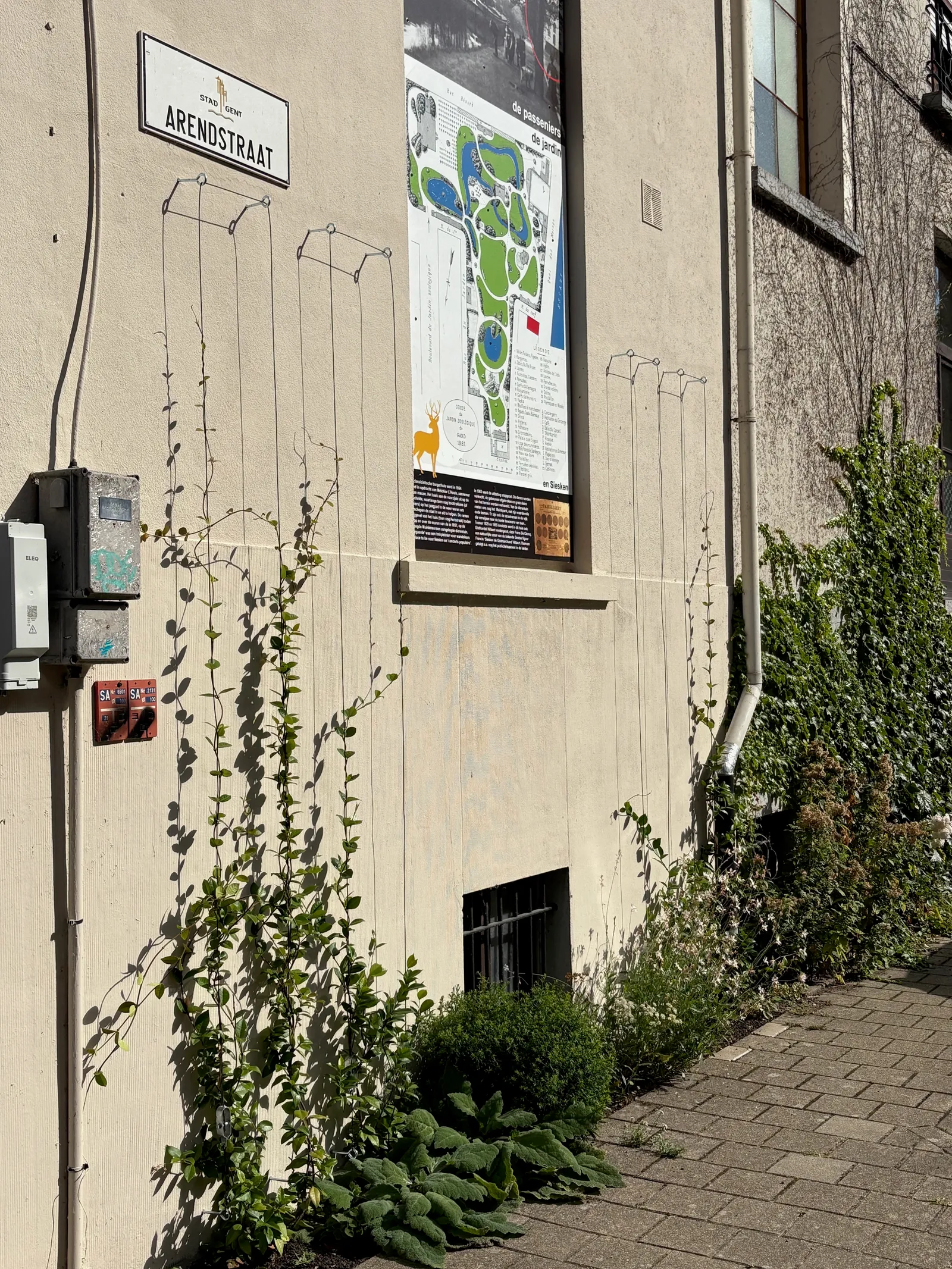 De ingrepen die hier in 2025 (door verschillende mensen) zijn gerealiseerd zijn meervoudig: de muur werd gereinigd (met dank aan de Stad Gent) en opnieuw geschilderd, en er werd een geveltuin aangelegd met Toscaanse jasmijn. Met dank aan de geveltuin actie.