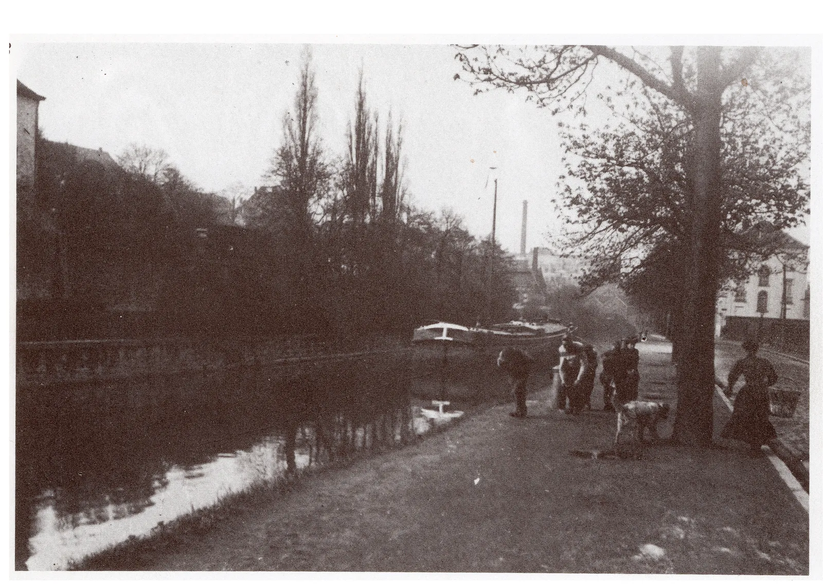 Op het paneel zijn o.a. een foto van het huis te zien, toen de ‘diergaerde’ hier nog was, en de bootrekkers (de passeniers) nog actief waren langs de Muinkschelde, om binnenschepen de stad in en uit te helpen.