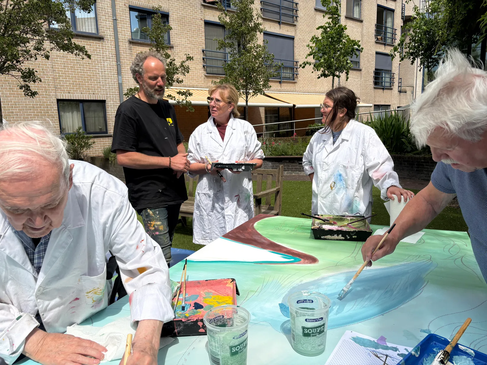 Ook mensen die geen kunstenaar zijn, en mensen van leeftijd uiteraard, die toch nog durfden het penseel te hanteren. En hun medebewoners en mede-personeelsleden die kwamen kijken en supporteren.