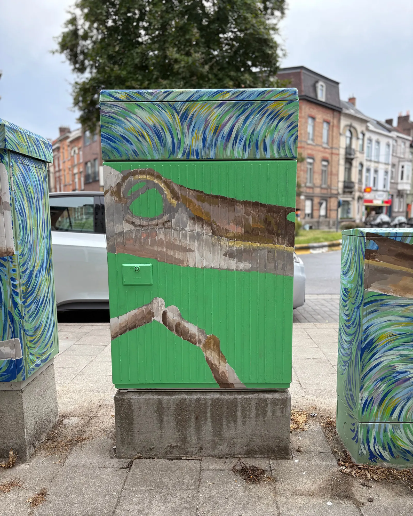 We vonden vier kunstenaars (of duo’s) bereid om mee te werken aan het omvormen van in totaal tien nutskasten, verspreid over onze buurt.
