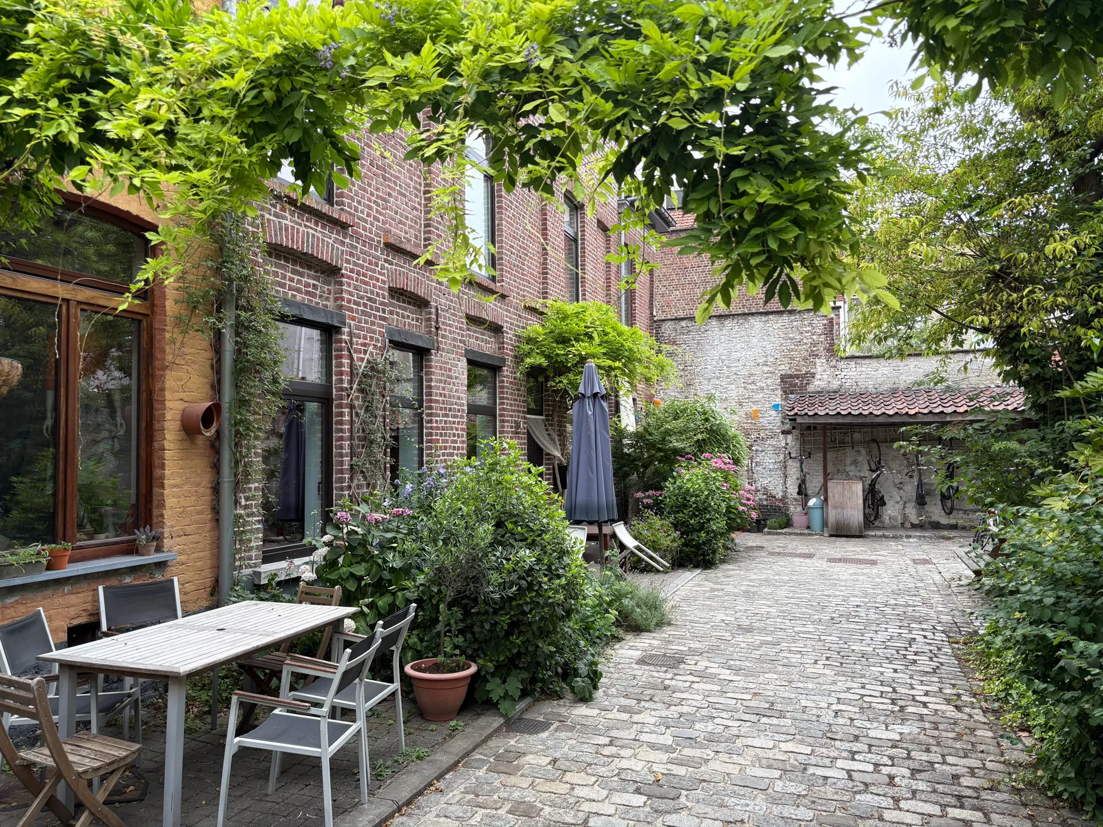 Van waar je nu staat zie je dat de cité vandaag uit twee verschillende delen en sferen lijkt te bestaan. Dit komt omdat de eenheid in 1989 werd verdeeld tussen twee erfgenamen (broer en zus). Aan de rechterhelft werd elk voorhuis individueel verkocht. Aan die percelen werd ook nog een deel van een achterliggende stal/magazijn toegevoegd. De linkerhelft werd verkocht in één geheel. Daar werden alle huizen tegelijk verbouwd en vanaf 1995 verhuurd als opbrengstwoningen met privétuintjes. De erg verschillende lay-out van de twee delen zorgt voor een grotere fysieke scheiding en een aantasting van het gemeenschapsgevoel.