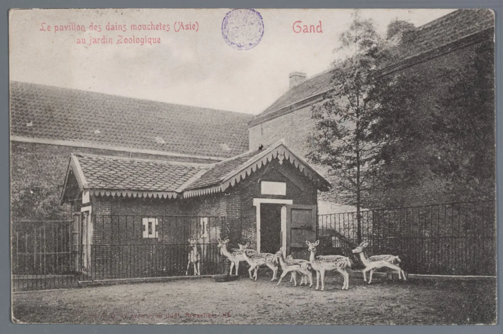 Als je de code aan de Hofstraat 44 scant, dan sta je voor ons huis. Dat is één van de zes ‘voorhuizen’ van de cité. Het plan op het bord is het situatieplan bij de bouwaanvraag van 1883 voor het bouwen van drie citéhuisjes achteraan links op het perceel. De hele site (bereikbaar vanaf de ‘Rue du Jardin’) was in die tijd eigendom van bouwkundige (en ontwikkelaar) Frans Cardon-Note. Ze was gelegen vlak naast de ‘Gentsche Diergaerde’ die hier bestond tussen 1851 en 1905.