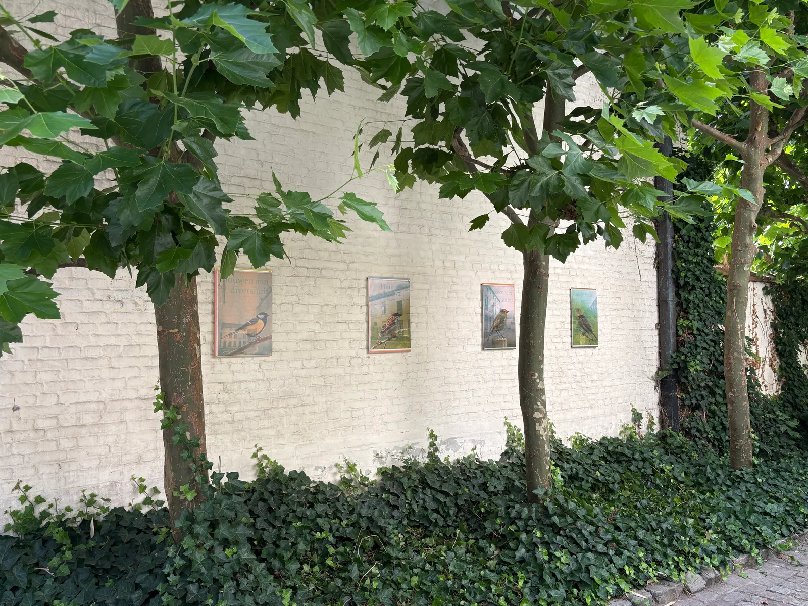 Steek nu de straat over en wandel tot net voor de ingang van de Klaproosstraat, om de neoclassicistische gevelrij van de voorhuizen te aanschouwen. Dit beeldbepalend ensemble van zes identieke stadswoningen werd gebouwd rond 1872-1875, met de Klaproosstraat als spiegel-as. Steek nu terug over en wandel door de Klaproosstraat. Geniet onderweg van de kunst van Angelica Overwater (nutskastje rechts, en project ‘Nestas’ links) en van Francis Bekemans (poort rechts).