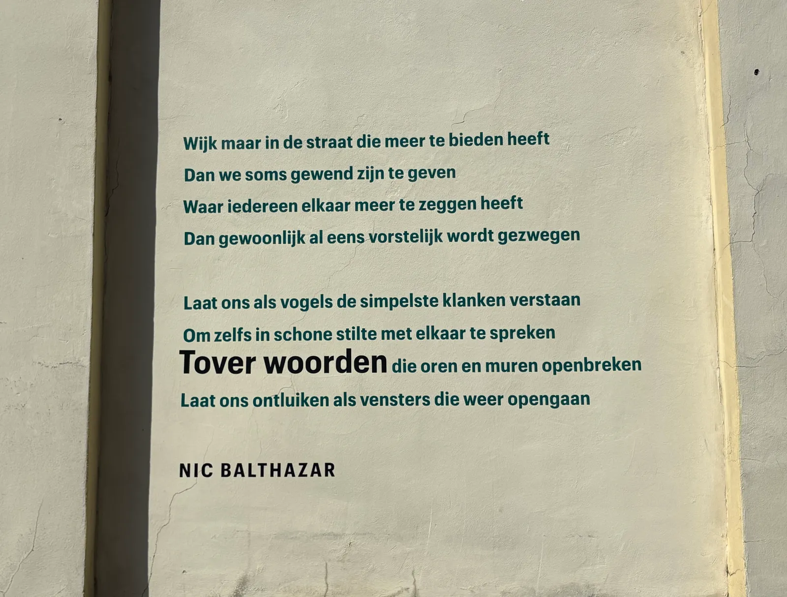 Poëzie over blinde ramen, en dichtgemetselde mensen. Over dichter en lichter. Over wijken, wonderen, warmte, en getoverde woorden.