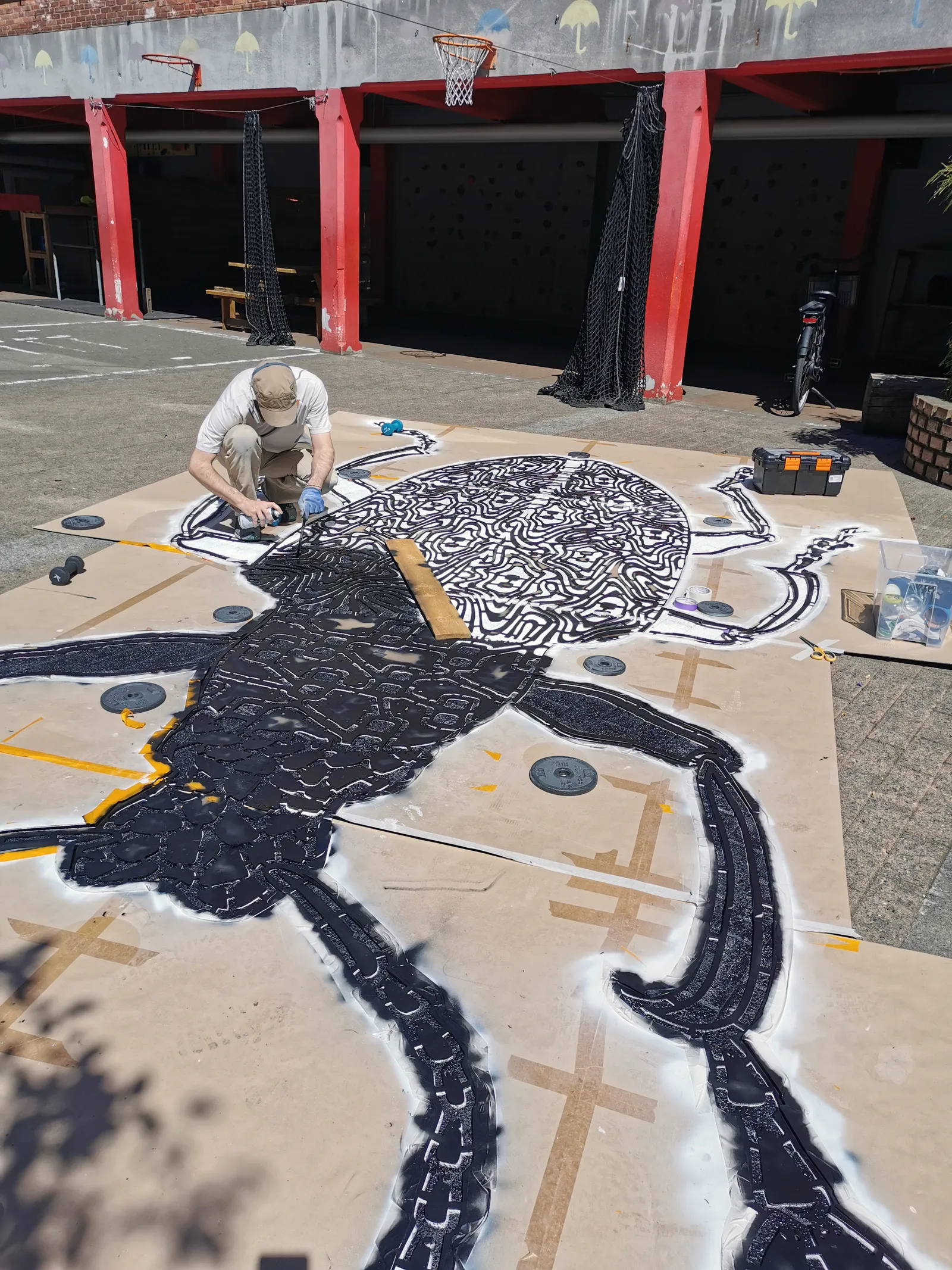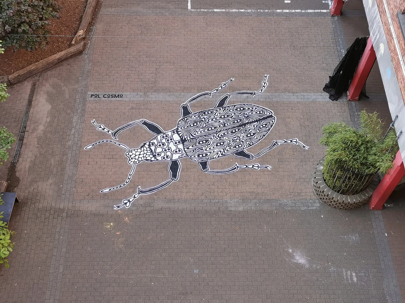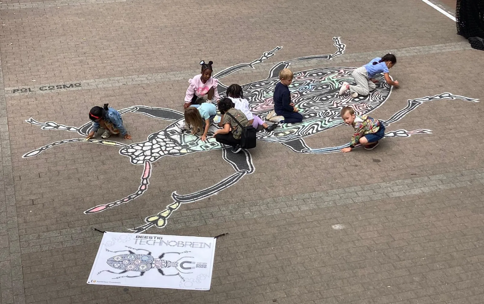 Daarnaast toverden Pol en zijn team ook een reuzegroot exemplaar op de speelplaats van de basisschool Crombeen.